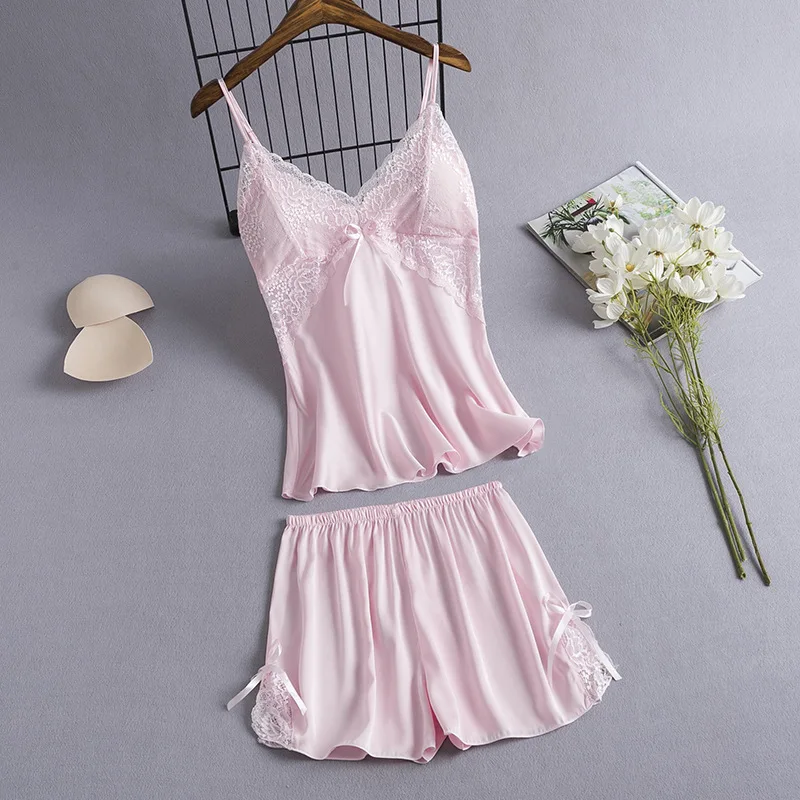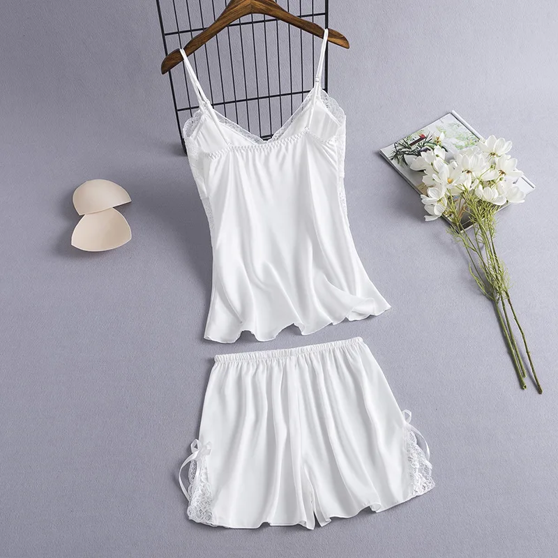 2 Pieces Cami&Shorts Sleep Set Women Pajamas Suit Sexy Lace Home Clothes V-Neck Sleepwear Lounge Wear Summer Nightwear